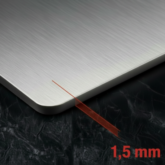 Notre modèle Planx'inox est fabriqué en acier inoxydable de qualité alimentaire 18/10, garantissant une surface de travail parfaitement plane et stable. Contrairement aux planches traditionnelles, elle ne se déforme pas avec le temps ou l'humidité, vous assurant ainsi une découpe précise et sécurisée à chaque utilisation.